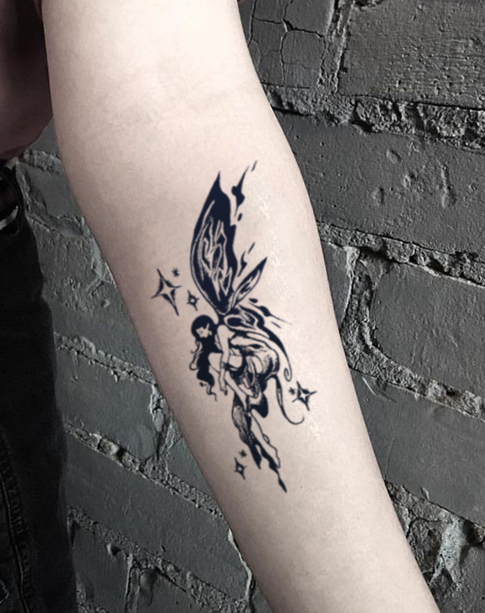 • Tattoo anbringen: Abziehen und aufkleben, leicht andrücken.